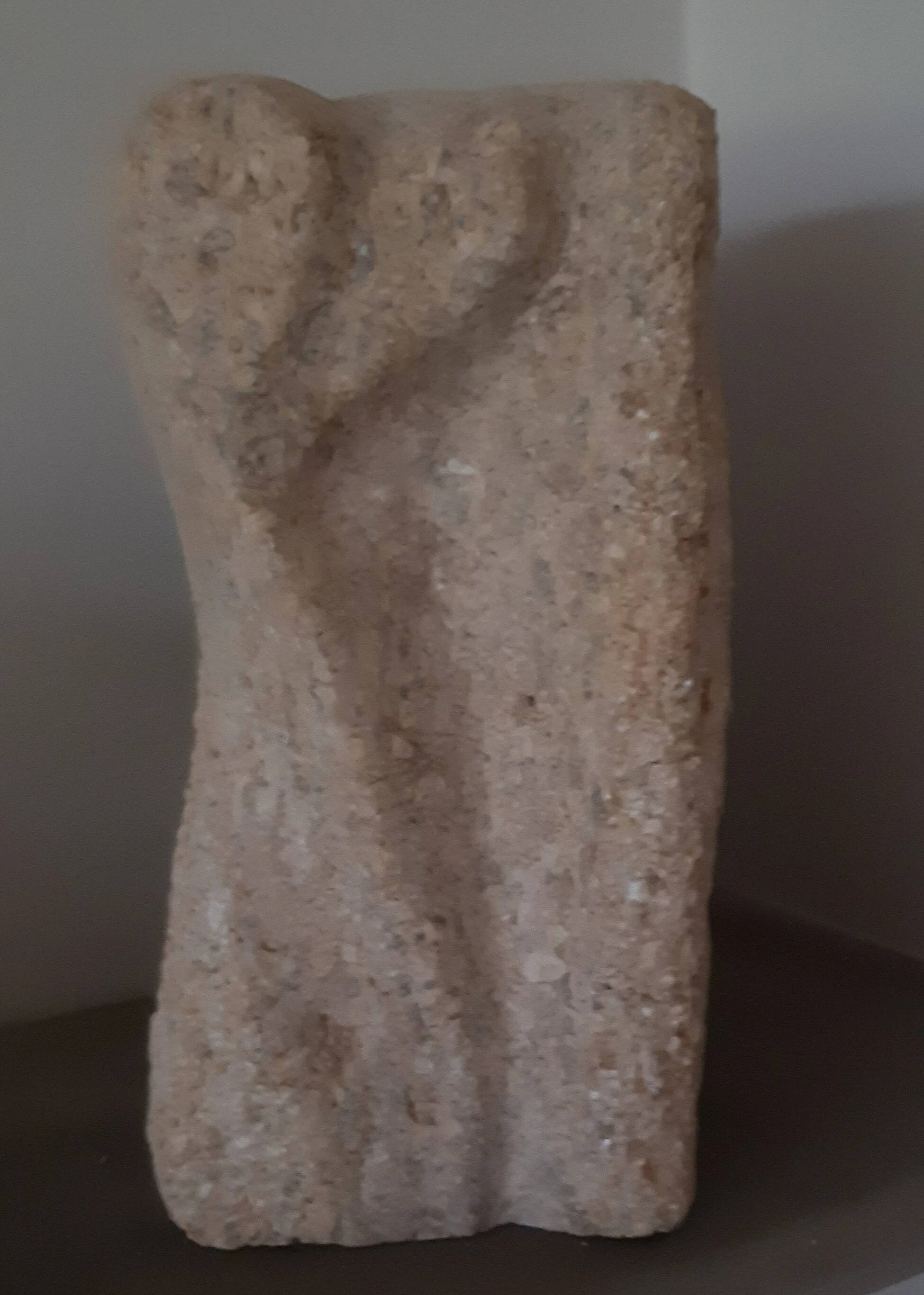 Sculpted limestone with natural stone untouched. Set on a concrete plinth- size 35cm (L) x 19cm ( H)